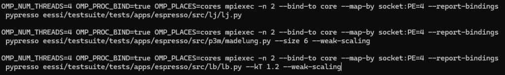[10] LJ test pull request: https://github.com/EESSI/test-suite/pull/155. LJ test versioned link: https://github.com/EESSI/test-suite/blob/48d62e7/eessi/testsuite/tests/apps/espresso/src/lj/lj.py