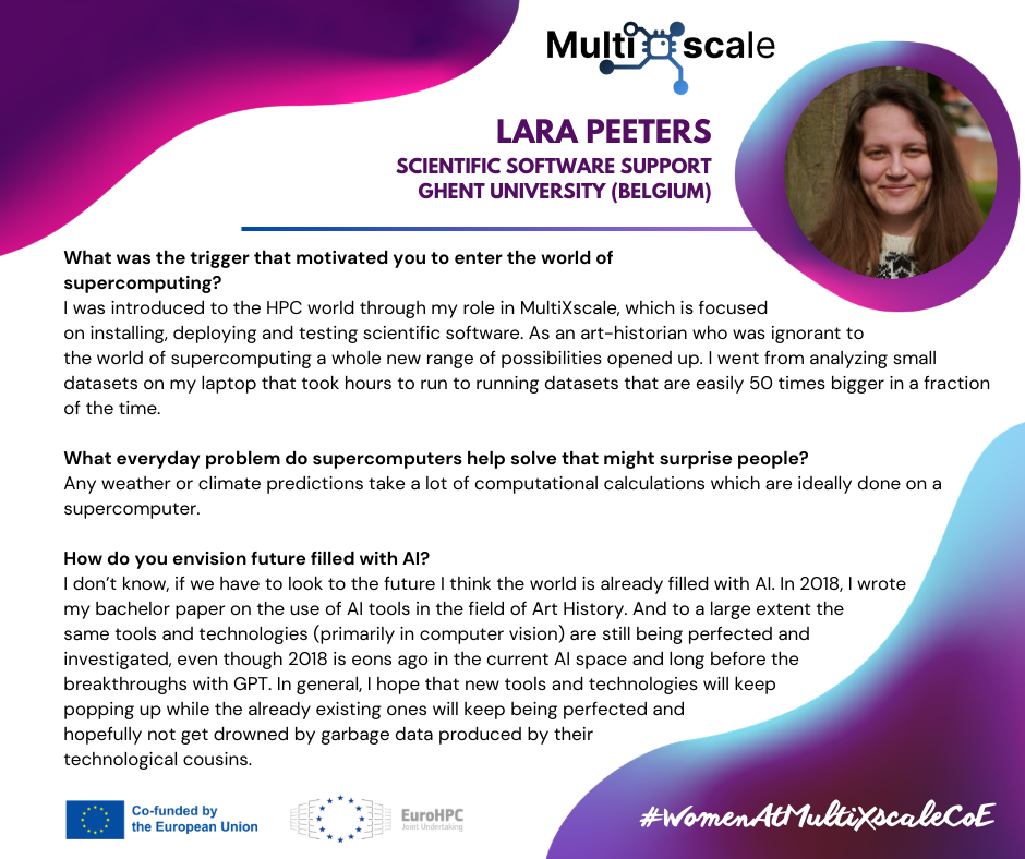 In the framework of the International Women’s Day – 8 March, this week, we highlight the talented women involved in our MultiXscale CoE through a series of short interviews, where they share their journeys, perspectives, and the inspiration behind their work: