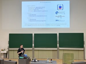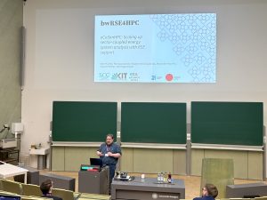 A full day was dedicated to HPC, with a 3-hour workshop on the Jülich Benchmarking Environment and a 3-hour HPC Carpentry instructor on-boarding session. We also learned about regional HPC consulting services offered by HPC.nrw and bwRSE4HPC, the commissioning of the Tier-3 BinAC2 cluster to democratize access to HPC in academia, the new FutuRSI institute to support developers of research software, a national initiative at NFDI to catalogue research software and run interactive Jupyter notebooks in the cloud, and the EU-funded EVERSE project to catalogue research software and document their compliance with FAIR principles. We got updates on the multiscale and multiphysics simulation software ESPResSo, waLBerla and TrixiParticles.jl, on HPC workflows with pyiron/Semantikon/APE, and on porting applications to HPC with Coccinelle semantic patching.