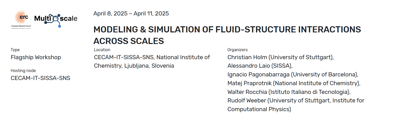 We are pleased to invite you to the workshop Modeling & Simulation of Fluid-Structure Interactions Across Scales, taking place on April 8–11, 2025, at National …